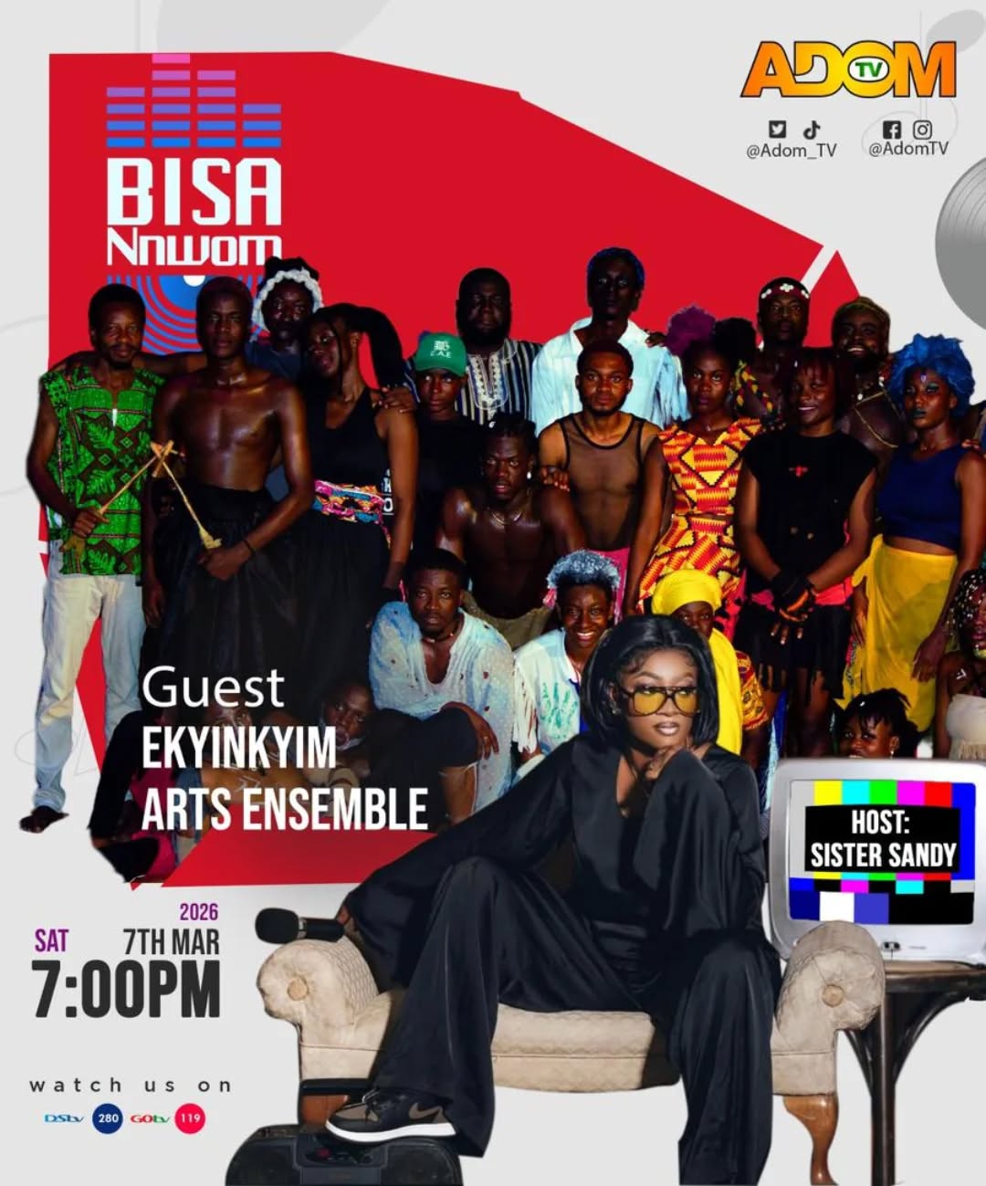Viewers can watch the programme on Adom TV via DStv Channel 280 and GOtv Channel 119, where the ensemble will deliver a colourful performance celebrating Ghanaian culture and creativity.